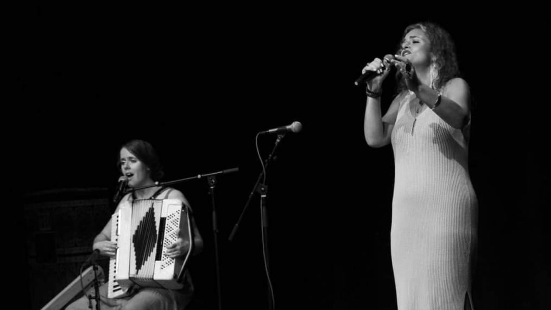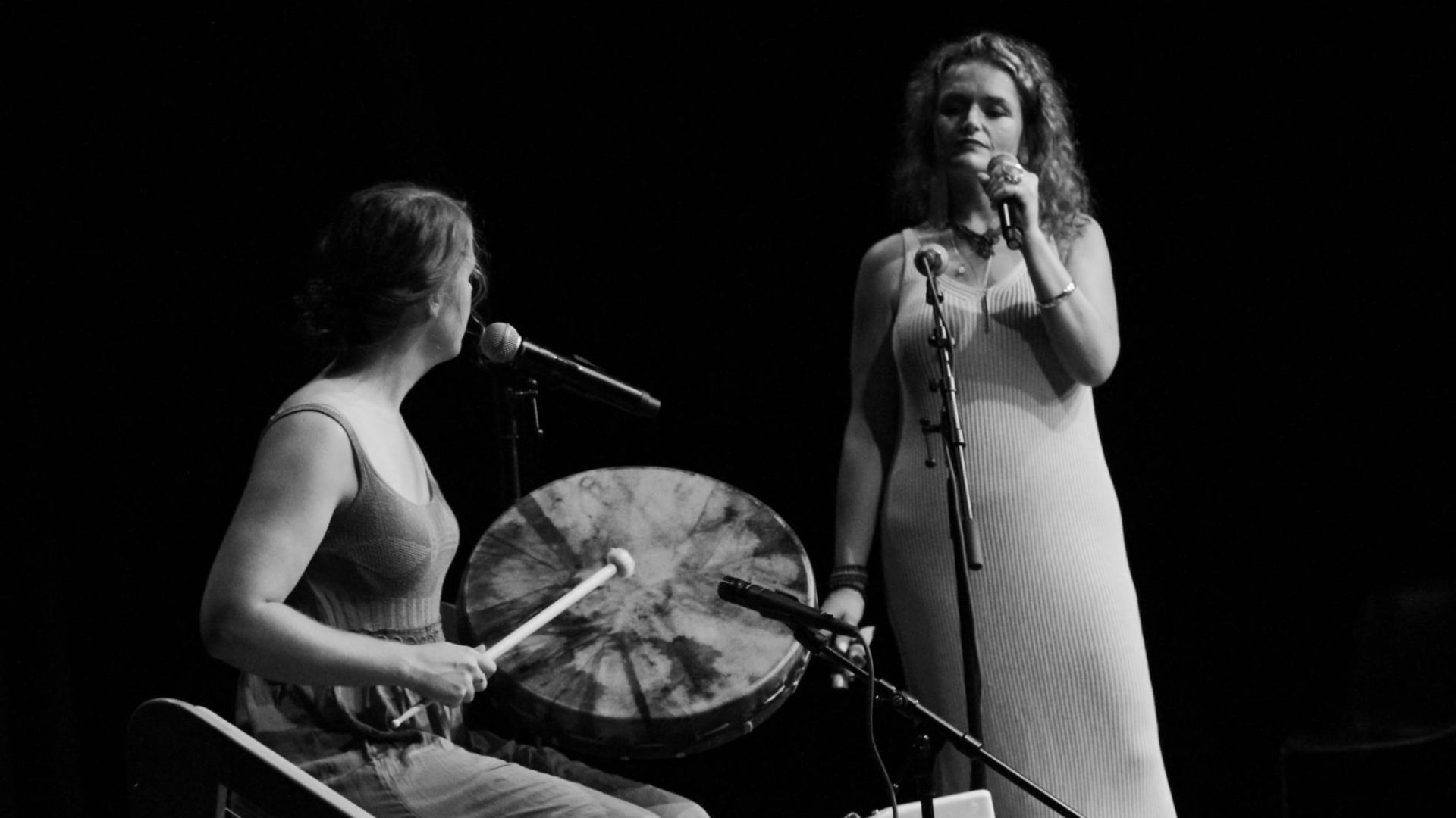 Christine Bolduc (conteuse et chanteuse) et Jessica Paradis (musicienne: harpe, accordéon et chant)