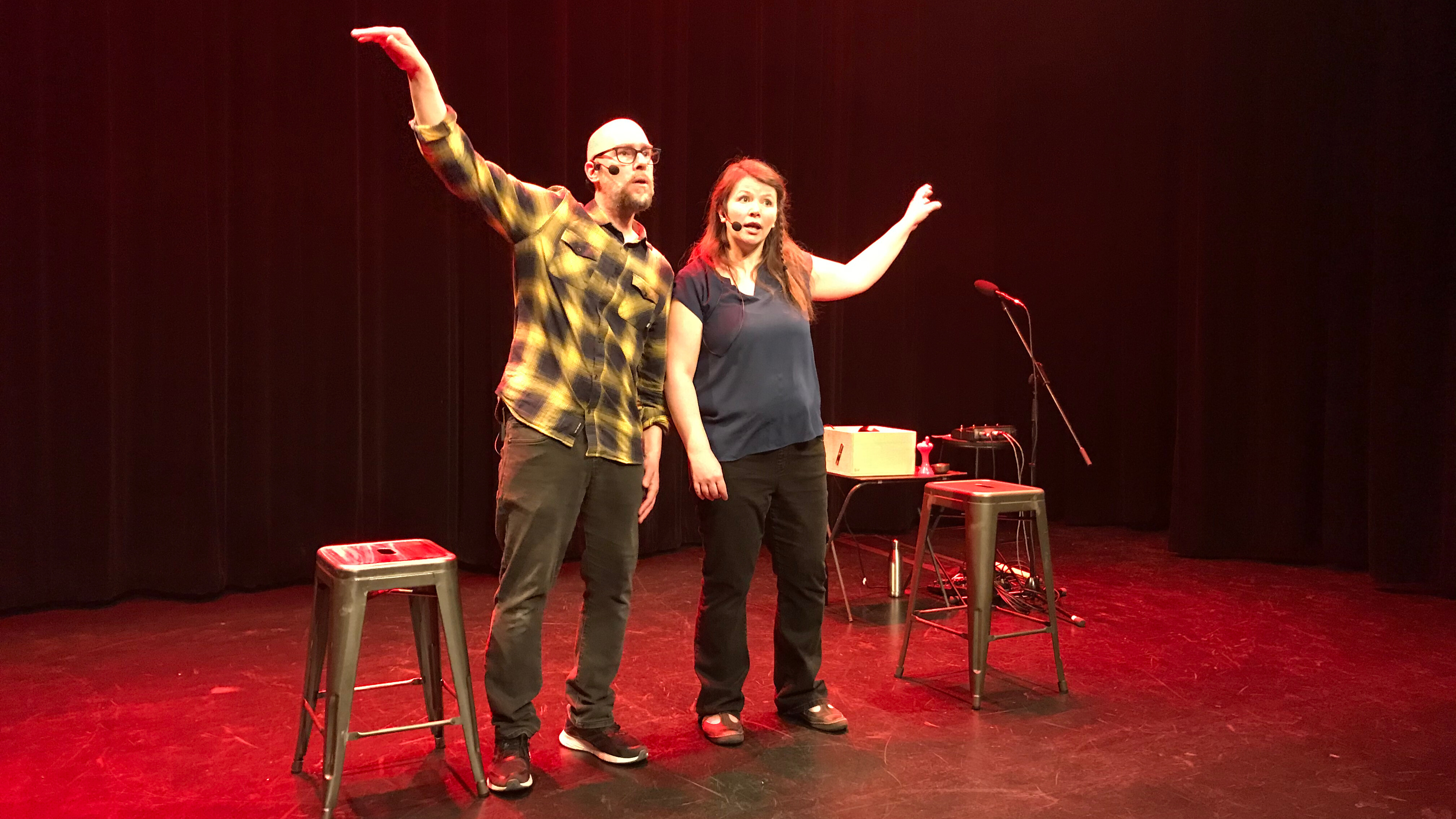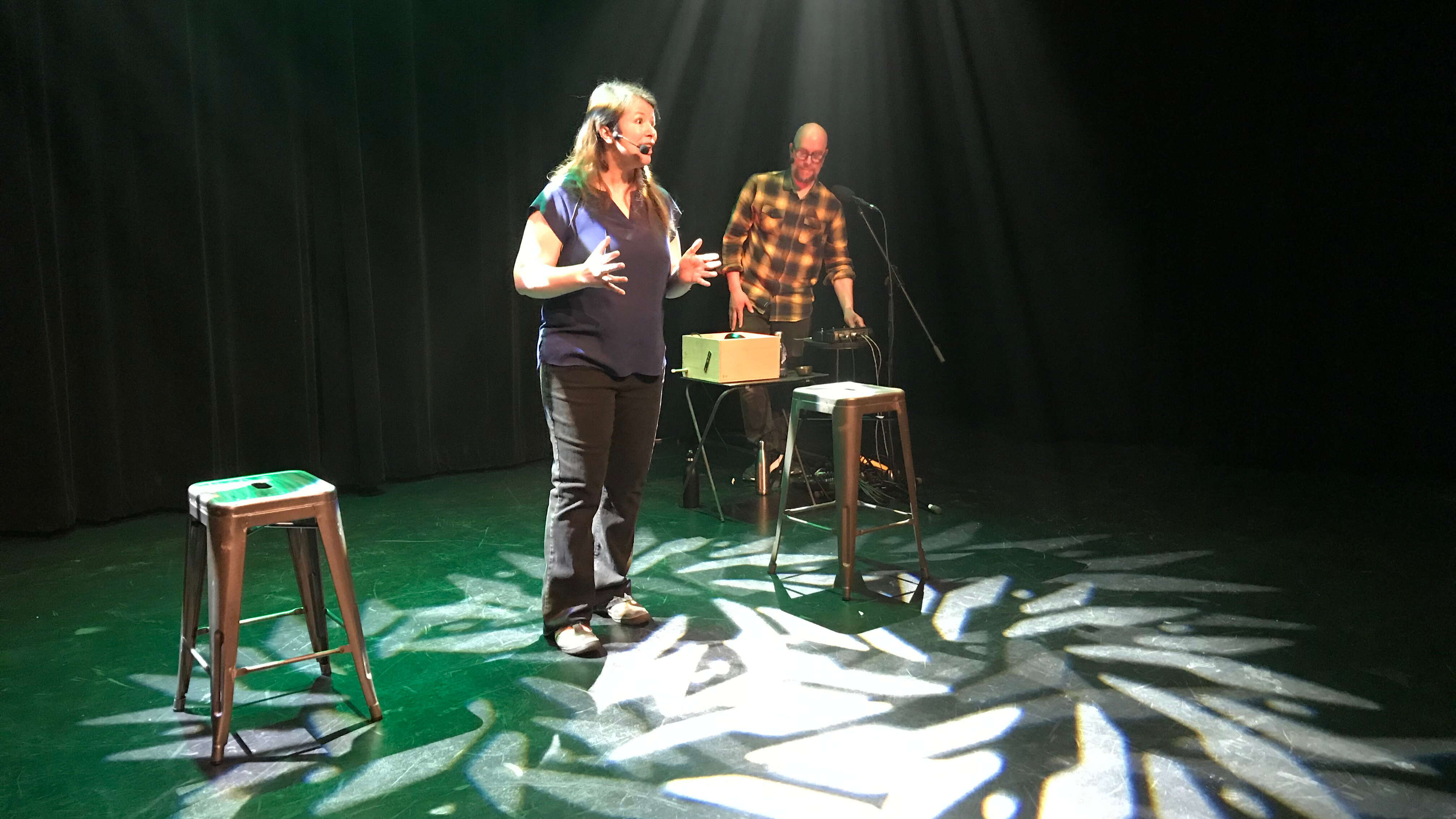 Complices au sein du groupe de conte actuel La Quadrature, Paul Bradley et Céline Jantet forment ici un duo haut en couleur qui nous entraîne dans la visite d’une maison rappelant Habitat 67… mais perdue au cœur d’un marais brumeux.