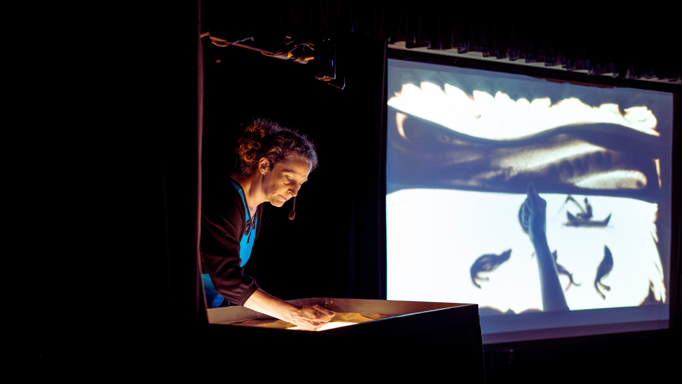 Idée originale, conception et réalisation des tableaux de sable, conteuse: Josée Courtemanche