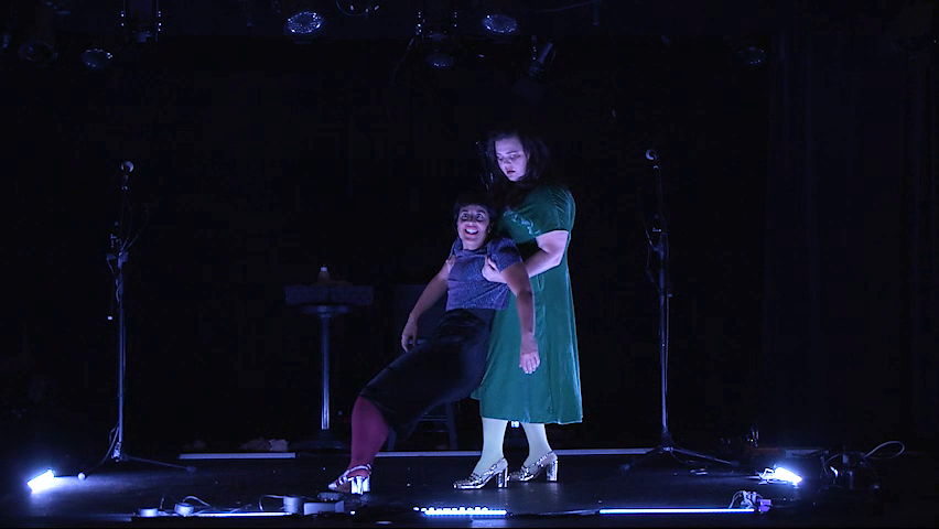 Issu de la rencontre de deux femmes de lettres et de jeu, le spectacle Fol Ouvrage (Torcher des paillettes) parle d’Elles à la première personne du pluriel.