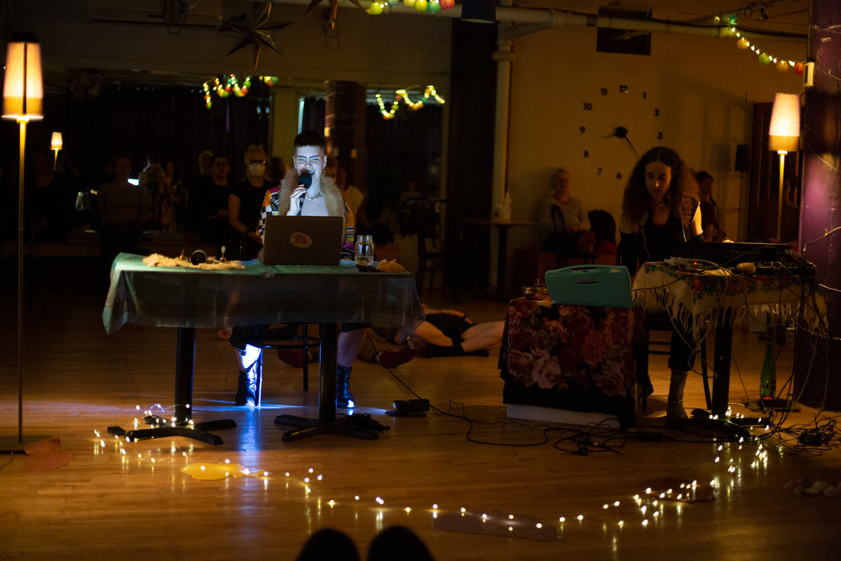 Dani Tardif est un.e artiste multidisciplinaire queer basé à Tio'tia:ke, Montréal. Sa pratique artistique est une ethnographie du vulnérable qui s'intéresse à rendre poreuse la ligne entre la fiction et le documentaire, la magie et le politique. Sa recherche concerne les nouvelles formes relationnelles qui se créent dans les craques de la rencontre entre l'individu et le collectif. Dani est un Theatre kid, les arts de la scène étant toute sa vie de l'âge de 5 à 20, formé au centre de loisirs de Laval Ouest, au programme théâtre de Curé Antoine Labelle et au DEC en Littérature, théâtre et communications. En 2013, iel co-réalise le documentaire ethnographique « On a gagné; regards sur une victoire amère » qui a été présenté dans plusieurs festivals à Montréal (FIFEQ, Hors-Cadre), ainsi que Cinéma Politica UQAM. Suite à une maîtrise en anthropologie culturelle et sociale à Concordia en 2016, recherchant l'internalisation du culte à l'amélioration continue néolibérale dans le milieu de la santé, iel se sont tourné vers la fiction. Hron, a Country of Ghosts (Image et Nation, Montréal, 2019) est son premier long-métrage, produit en collectif. Dani a travaillé par la suite à des courts-métrages expérimentaux abordant les thèmes de l'intime, des sens et des relations queer (bonds 2018, fruits 2021). Ses œuvres ont été projetées au Canada, aux États-Unis, au Mexique, en Allemagne et en Autriche. Iel s’intéresse actuellement aux oralités, notamment l'art de la radio et au conte. Après avoir conté dans des cabarets de salon et être naturellement une raconteuse d'histoires captivantes et magnifiées, ses performances de contes sont sélectionnés dans différents festivals (Entractes, Nuit Noire). En ce moment, iel développe une pratique d'art audio hypnotique de fiction spéculative sur les changements climatiques, Q_Descendance, en plus de rédiger son premier recueil de poésies Saisons.