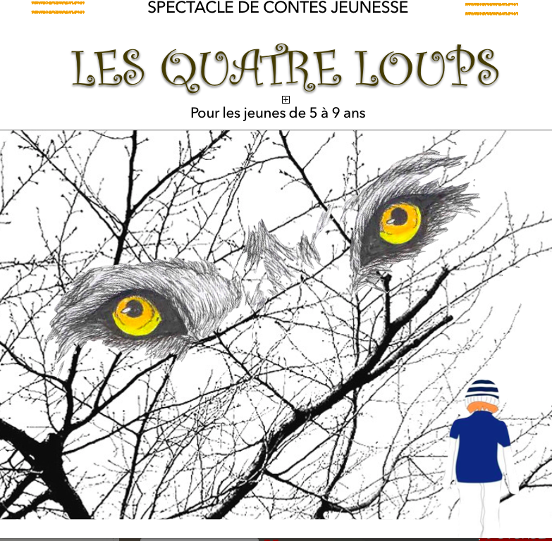 J'ai aussi en poche 5 spectacles solos (date de création) : ADULTES: "Une petite odeur de grillé!"(2013), "Esther" (2015), Coeurs piégés (nov. 2019); JEUNESSE: "Les quatre loups" (2015), "La goutte de miel (2015)". Et, j'aime aussi conter en duo avec d'autres conteurs (Diane-Marie Racicot, Geneviève Falaise...). N'hésitez pas de me demander des contes sur commande. Jetez un coup d'oeil sur mes spectacles sur mon site internet: http://francoisecrete.com