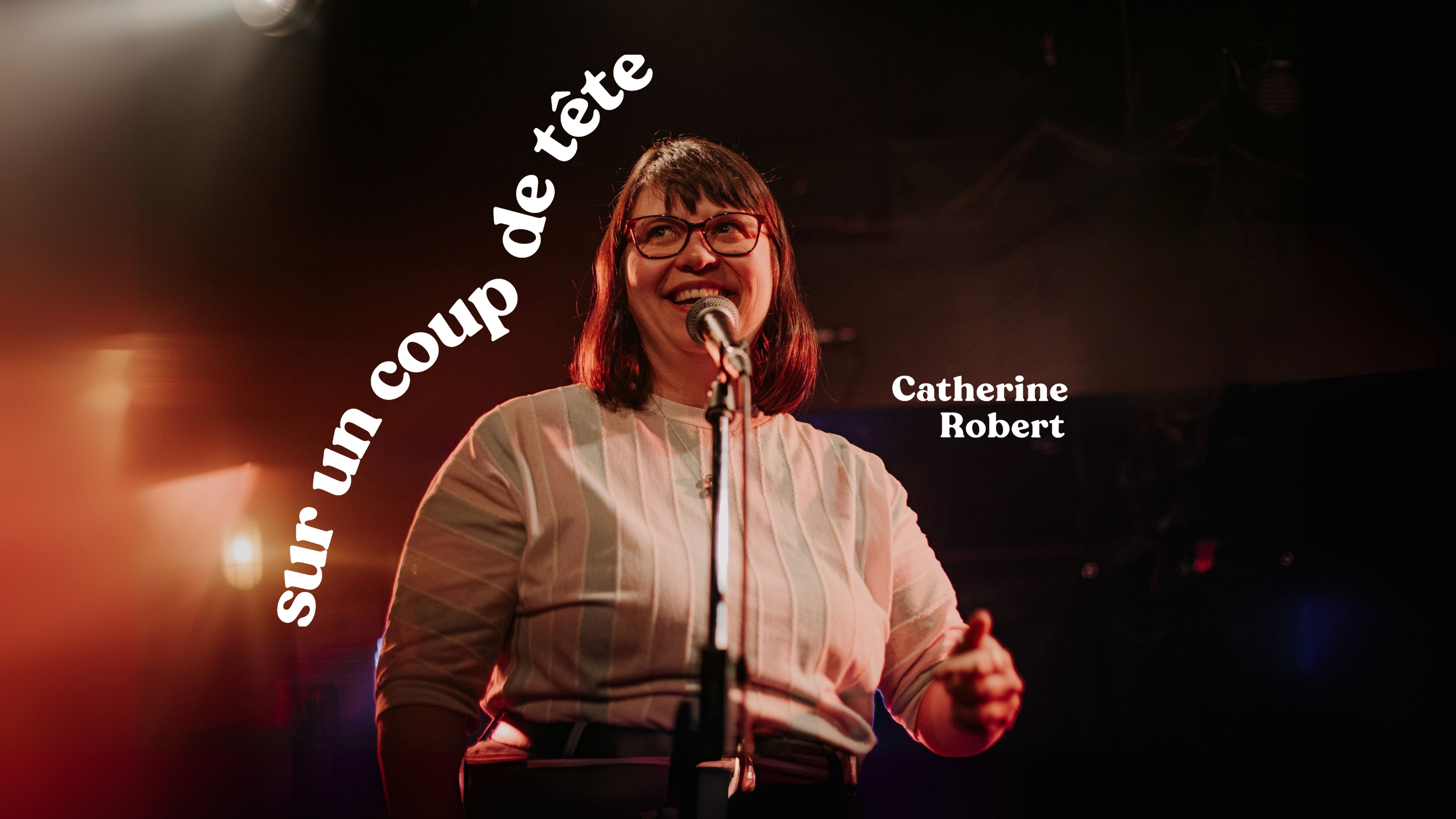 Sur un coup de tête est un spectacle sensible et lumineux où Catherine Robert aborde les thèmes de la résilience, de l’introspection et de la santé mentale. À travers ses récits, elle invite le public à ralentir, à rêver et à prendre soin de soi, tout en naviguant entre humour et émotion.