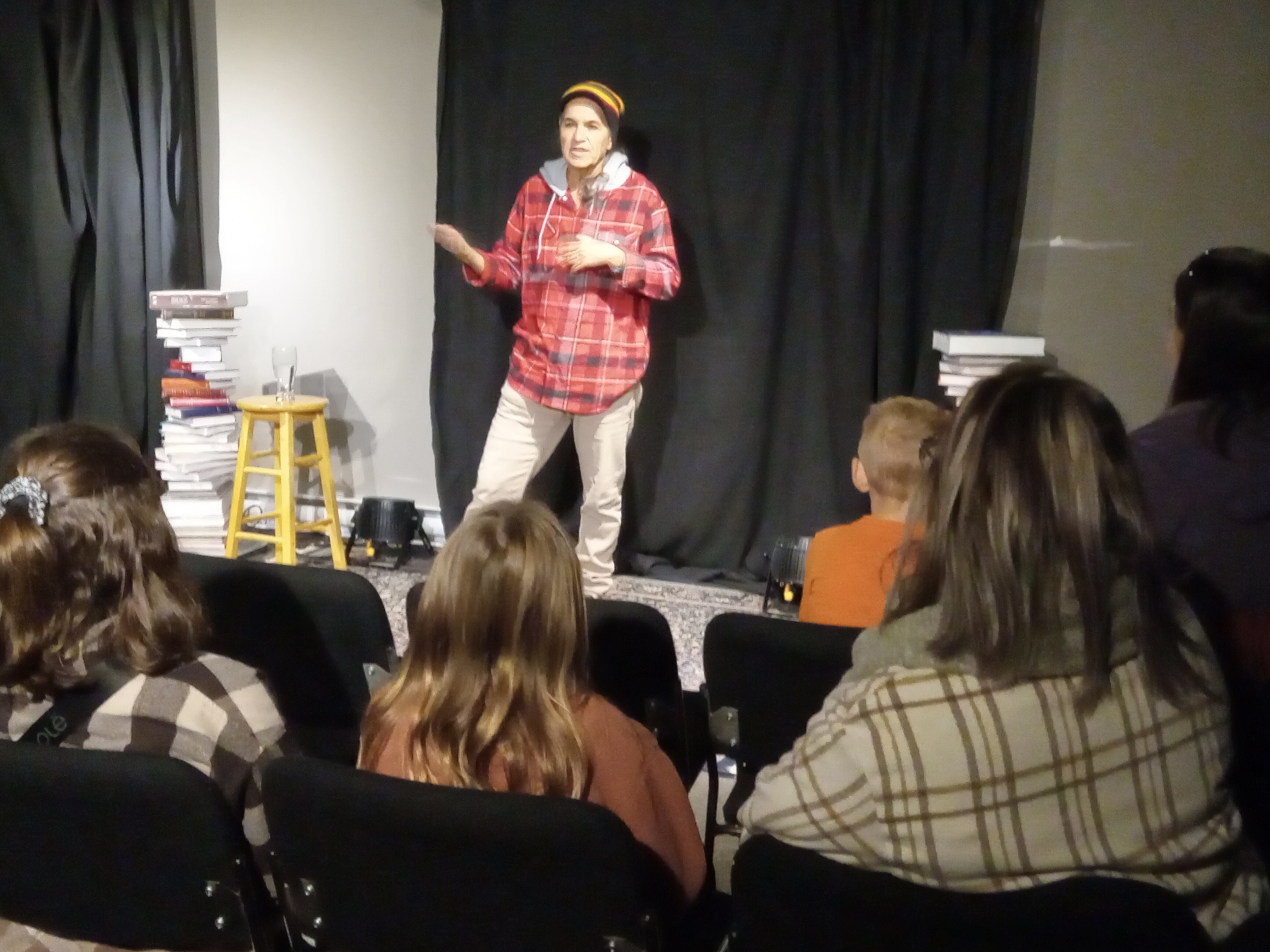 Il a déjà été jouer au bar Ninkasi à Québec : Conte et bouffe , une première dans le domaine du conte.