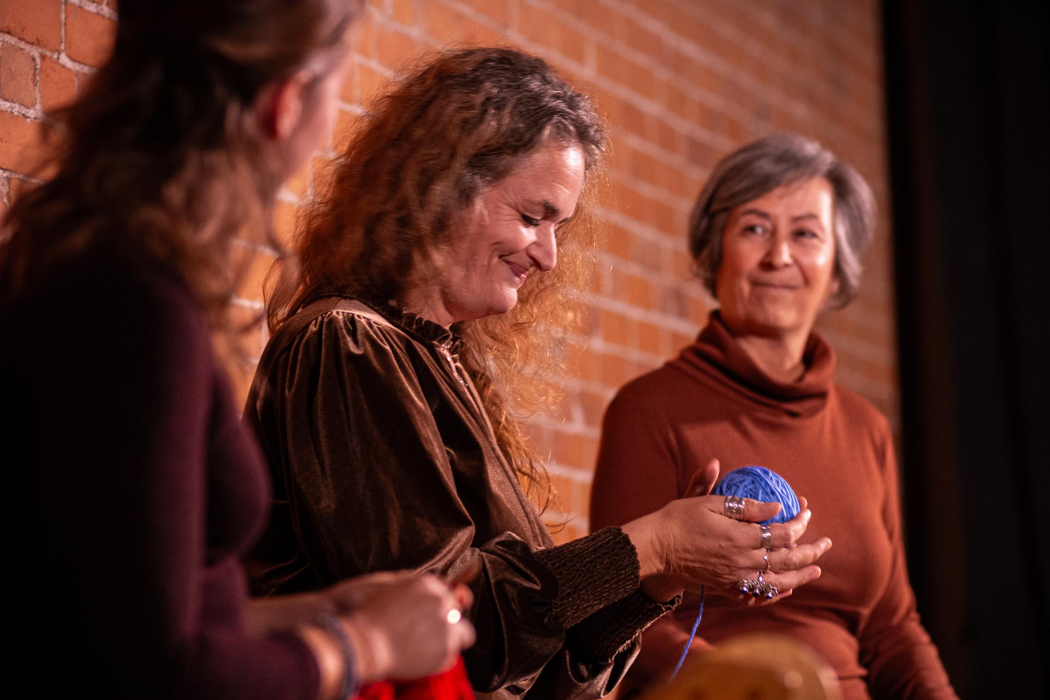 Un chant millénaire parcourt le spectacle et tisse une trame — c'est un mythe de création, le chant I du Kalevala, épopée mythique finnoise, au son du shruti box et de la voix d'une chanteuse et de deux conteuses. Entre les extraits de ce mythe se déploient des anecdotes parfois drôles, parfois tragiques, des poèmes accompagnés de la musique d'une harpe, des chants à 3 voix. Les artistes tricotent, littéralement, sur scène les pièces d'un foulard aux mille couleurs qui n'en finit plus, symbolisant le lien, la transmission et parlant des travaux qui ont ponctué les vies des femmes qui nous ont précédées, dans le silence hivernal des maisons comme dans les chants et discussions animées des rassemblements de femmes.