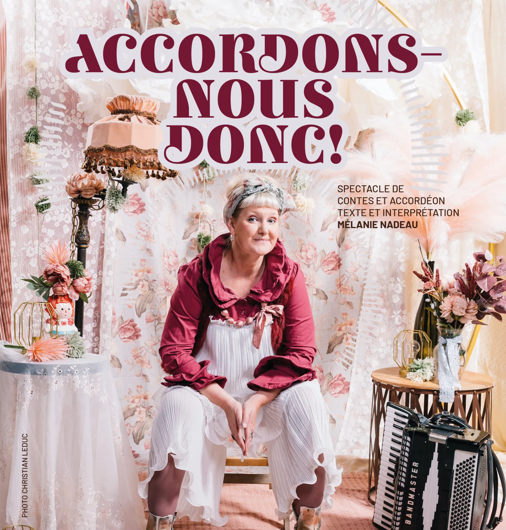 Accordons-nous donc! est un spectacle de contes et accordéon où musique et histoires font bon ménage! Découvrez, grâce à trois histoires et des personnages attachants, l’importance de s’accorder entre nous, de s’accorder le droit de rêver grand et de s’accorder du temps pour ce qui compte vraiment!